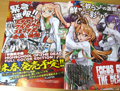 A decemberi Dragon Age magazin megerstette, hogy a High School of the Dead jra ki lesz adva ngy srtett ktetben jv tavasz elejn, teljesen szinesen. Az anime adaptcit Japnban most adjk ki Blu-Ray-en. A manga jelenleg a 6. ktetnl tart, a 7. ktet tavasszal kerl megjelensre egy ajndk OAD rsszel.